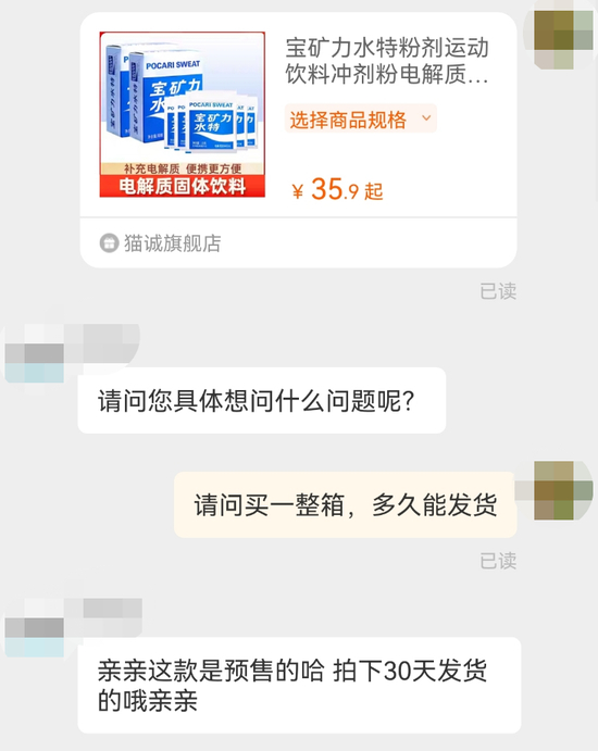 百度指数显示,12月5日至12月11日,电解质水的搜索指数整体同比陡增2711%。目前,在淘宝、京东等电商平台上的宝矿力水特、外星人、元气森林、农夫山泉等旗舰店搜索“电解质水”,大部分商品均显示“采购中”“无货”“补货中”,仅少量还有现货,电解质饮料冲剂粉末也“爆单”。