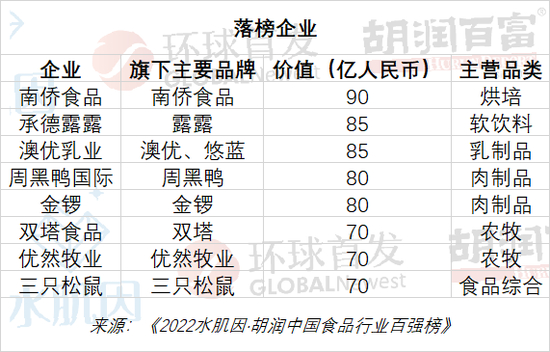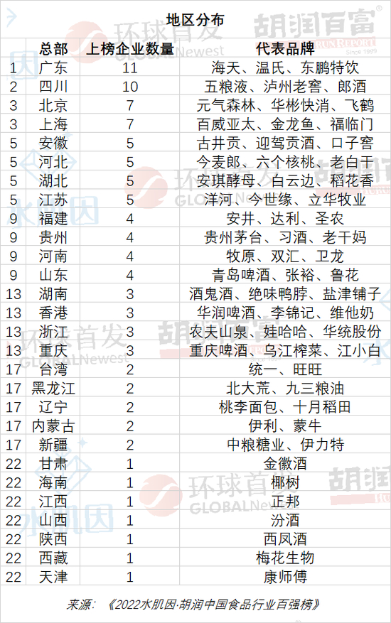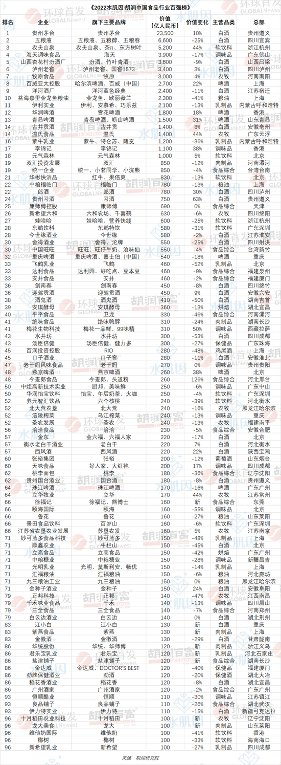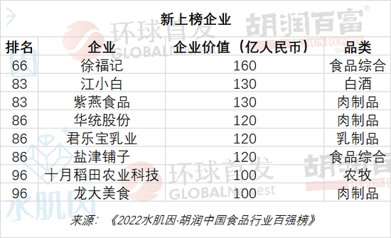 胡润研究院发布《2022水肌因·胡润中国食品行业百强榜》