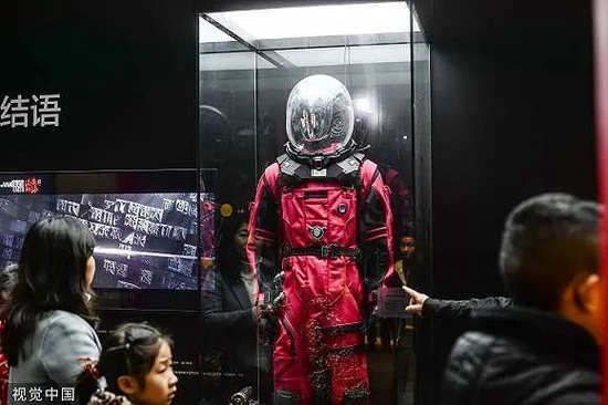 2020年1月7日,四川成都。《流浪地球》电影主题展在四川科技馆展出,展览展出刘启地表防护服、张小强军用防护服、李一一地表防护服等