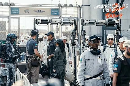 与第一部相似,《流浪地球2》试图在民族主义与人类共同体式的平等团结之间寻求平衡,对全球合作的价值理念强调得也更多,主要呈现在第三条线中周老师的台词表达里,比如在月球核弹因为各国密码不同、无法共同引爆时,他愤怒感叹:“人类把最精密的保密系统,都用在了自我毁灭上。”电影中出现的宇航员们肤色不同,航空服上国旗各异,在同声翻译技术的帮助下,他们自然地说着各国语言,但也有多个场景呈现了技术退场后各国宇航员难以理解彼此的状况。