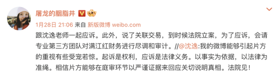 《满江红》官博则在隔天(1月26日)发布了一条长达400字的声明,