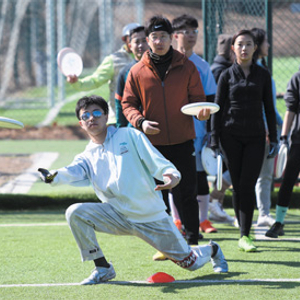“飞盘简单易学,玩起来心情舒畅。”北京市民明月说,在教练指导下,半小时就学会了接盘、抛盘。通过飞盘运动,她还结识了不少好友。