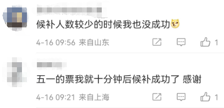 对于候补订票的成功率,一些网友称“每次都能买到”,也有些网友表示等待许久也抢不到。