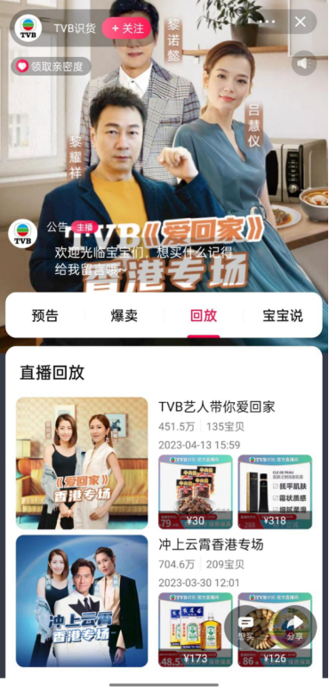 新浪财经观察到,截至发稿,TVB在淘宝上已经进行了3场直播,官方公布过的销售额合计约9670万元。在合作中,TVB摆出了前所未有的大阵仗,直播团队全部由内地迁往香港,并且将直播间常设于TVB电视城内。适逢淘宝直播正在加快内容化进程,明星效应+港风情怀的组合拳,真的可以为TVB带来更多的购买力?