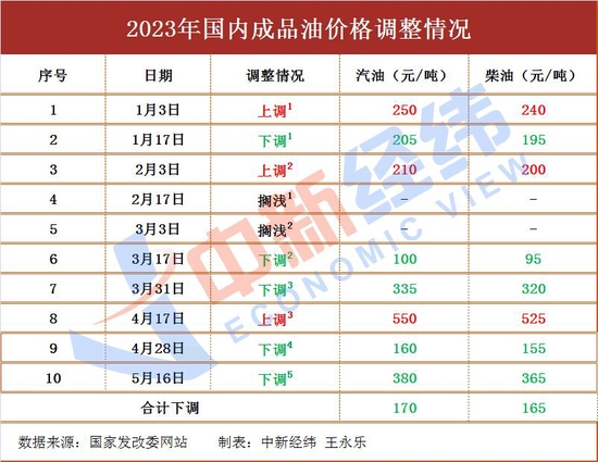 此次调整落地后,今年以来,国内成品油价格已进行了十轮调整,呈现“三涨五跌两搁浅”的格局,汽油每吨累计下调170元,柴油每吨累计下调165元。