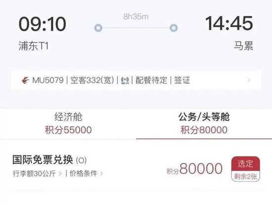 沟通失败后,胡兵表示非常无奈,在胡兵看来,东航这样的做法有些不可思议,毕竟攒积分这么辛苦,怎么积分消失得就这样容易,“飞一次欧洲头等舱积分才两万多,要飞多少个来回(才能有50万积分)”。他直言,东航这次的行为让他大跌眼镜。