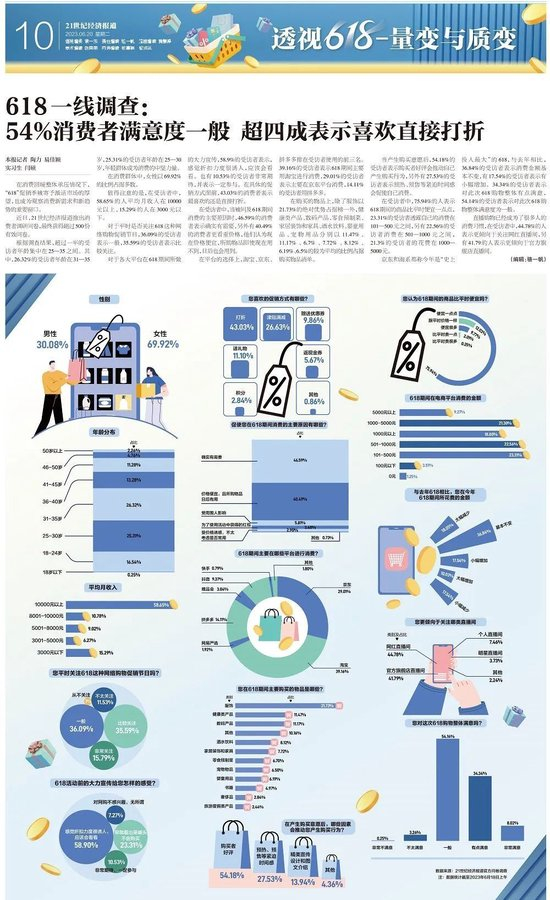 618一线调查:54%消费者满意度一般,超四成表示喜欢直接打折