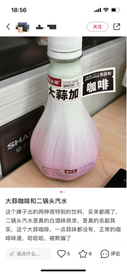 目前在互联网社交平台上,带有老陈醋可乐、二锅头汽水、大蒜咖啡的相关内容都能带来不小的流量,甚至二锅头汽水还带上了“婚礼酒局神器”的标签。也有消费者将其称为“阴间饮料”。