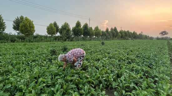 (亳州一位年近八旬的老人在中药地人工除草)