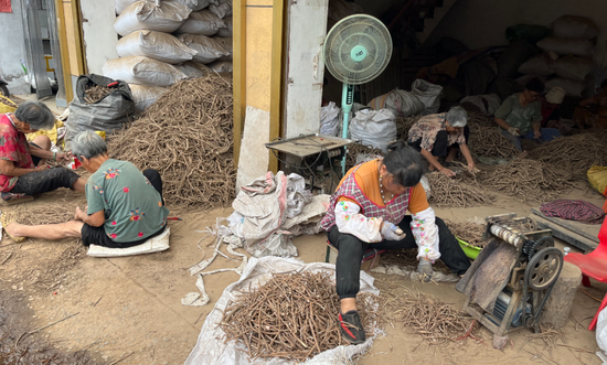 (丹皮粗加工现场)
