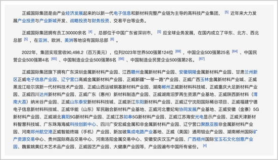 取而代之的是,这次限高风波后,正威官方网站乃至百度百科“正威集团”词条下,都已删除上述产业园以及矿产资源储备的信息,但在正威的一些招聘广告中,相关信息依然还可查询到。