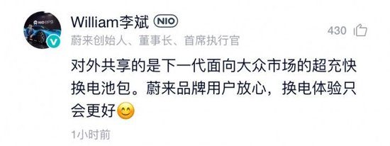 对此,李斌回应:对外共享的是下一代面向大众市场的超充快换电池包,换电车型和换电站都将基于 800V 高压快换平台打造。