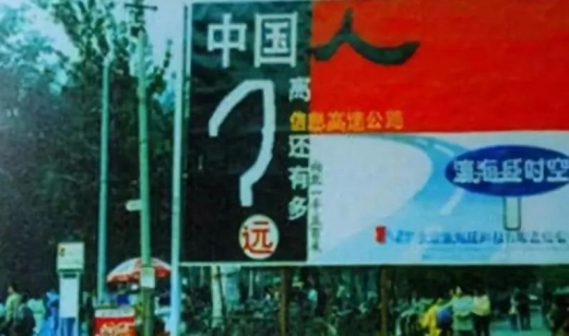 这是中国互联网历史上最有名的广告牌之一,也是我国当年互联网时代的缩影,引起了巨大轰动,很多人把它当成了路标,也有很多人沿着指示寻找信息高速公路,至今很多人还记得当时的震撼。