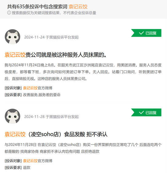 事实上,这并不是袁记云饺第一次被曝出食品安全问题。据21世纪经济报道,记者在投诉平台上检索发现,与袁记云饺相关的投诉达635条,其中包括“食物没煮熟”“有异物”等关键词。