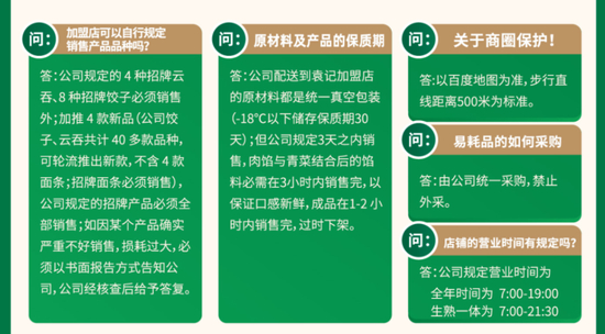 在高线城市,加盟主推的B类生熟一体店,要求店铺面积不低于60平方米,不包含店面租金、人工、周转资金,前期投资约为36万元,无优惠或扶持政策。作为对比,同一赛道的品牌“熊大爷现包饺子”40-59平方米门店加盟费为26.5万元,“如意馄饨”40-50平方米门店加盟费为15万元,并具有一定的加盟费减免优惠。