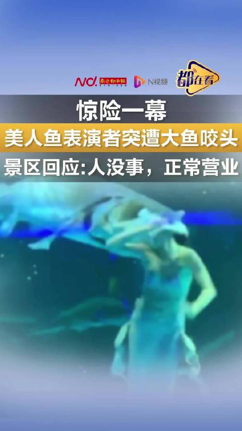 惊险一幕!#美人鱼表演者突遭大鱼咬头,景区回应:人没事,正常营业