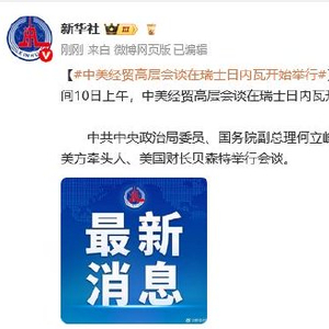 【#中美经贸高层会谈在瑞士日内瓦开始举行#】新华社日内瓦5月10日电 当地时间10日上午,中美经贸高层会谈在瑞士日内瓦开始举行。中共中央政治局委员、国务院副总理何立峰作为中美经贸中方牵头人,当天与美方牵头人、美国财长贝森特举行会谈。