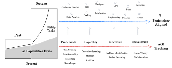 Profession Aligned可以有很多类型应用来解决,评估不会限定解决方案,只会考核结果。另外,Profession Aligned评估从对生产力的需求出发,是定义垂类应用/寻找垂类AI解决方案,即使这个场景应用还没有做出来。