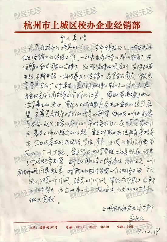 在宗庆后1987年的工作总结里可以看到,宗庆后在这一年做了三件事,其中一件就是筹建了杭州保灵儿童营养食品厂,而这是娃哈哈的前身。