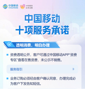 新浪财经查阅中国移动App发现,目前官方已经上线《中国移动十项服务承诺》(简称:《承诺》),表态将在透明消费、主动提醒、套餐变更、业务退订、营销免扰等十方面作出改变,保障用户权益同时接受投诉监督。
