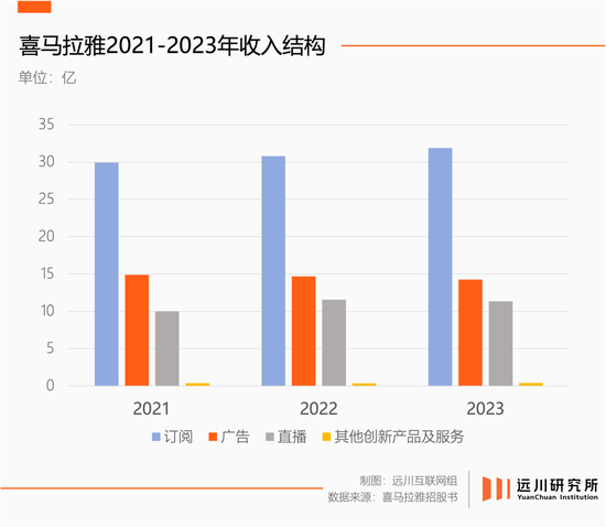 与之对应,喜马拉雅2021-2023年收入结构中,订阅收入贡献过半,是当之无愧的营收支柱。