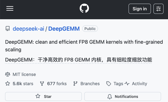 DeepSeek之前开源的5.6k星标项目FP8 GEMM内核DeepGEMM就已经支持UE8M0,不过这个项目主要是适配英伟达芯片和CUDA生态。