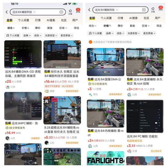 《远光84》的公平竞技环境正在被一条成熟的外挂黑产链条快速侵蚀。在闲鱼等电商平台上,大量标注“透视穿墙、自瞄锁头”功能的外挂商品泛滥成灾,价格低至3元/天,甚至有卖家直言“游戏检测不严,上分如喝水”。这种低成本作弊工具的普及,让普通玩家在对局中频繁遭遇“锁头秒杀”“隔墙爆头”等诡异场景。
