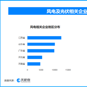 从区域分布来看,江苏省、山东省、广东省风电相关企业数量位居前列,三个省市数量总和超过3.2万家,占企业总数的29.19%;江苏省、广东省、山东省光伏相关企业数量位居前列,三个省市数量总和超过40.9万家,占企业总数的32.4%。