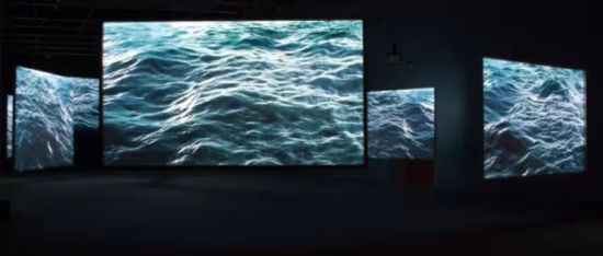 艾萨克:总共五次收藏了,其中包括MoMA、挪威国家美术馆、Luma基金会等,他们大多收藏的是九个屏幕的版本。21CBR:香港巴塞尔期间,你在M+项目中也有一个三屏版的《浪》的展出,但你的原版是九个屏幕,你如何针对屏幕数量对作品进行调整?