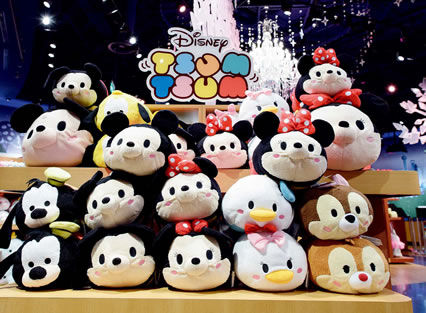 迪士尼此次特意将日本商店的产品系列带到上海,旗舰店的2000 多种商品基本上沿用日本的产品线及产品策略。“萌” 是亚洲卡通与玩具设计的一大特色,尤以日本著称。一般来说,迪士尼商店的产品均由总部开发,再复制到各个地方,但日本的商店体系能够独立开发产品,其产品多贯彻萌文化。比如2013 年推出的TSUMTSUM 系列毛绒娃娃以及大学熊系列,大受欢迎,就是日本商店开发的,他们还会定期制作新产品杂志,产品设计、杂志制作、搭配拍摄等堪比专业时尚杂志。