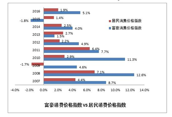 富豪消费价格涨幅远高于居民消费价格涨幅(1.9%)