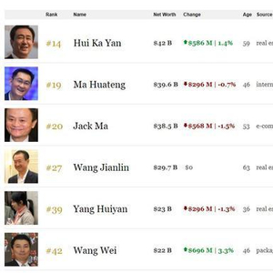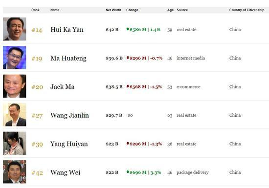在2017年福布斯中国富豪榜中,许家印以420亿美元的个人财富位列第一,马化腾(396亿美元)和马云(385亿美元)分列第二、三名。王健林在此前报道中误写为首富,但实时榜单应以297亿美元位列第四名。在福布斯全球富豪榜单中,此四人分别列居第14、19、20、27位。