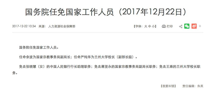 2017年12月,不再担任中国人民银行行长助理