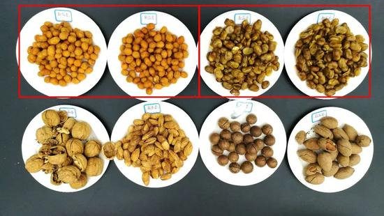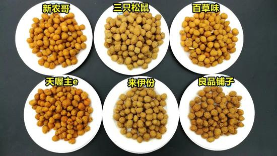 6个品牌都有多味花生,而且给的量还都挺多。这里面,良品铺子后味最辣,来伊份、三只松鼠和百草味 甜味明显。