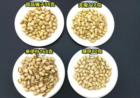 这里面,良品铺子的开心果最原味、最好吃,之后是天喔,而来伊份的量最多。