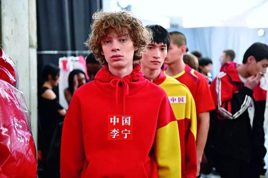 今年2月、6月,李宁公司在纽约和巴黎各做了一场秀。面目清冷的外国模特穿着的红黄配色的体操服、田径服、T恤衫上写着大大的‘中国李宁’字样,印着李宁当年在吊环、鞍马比赛时的照片。那时他还是国之青年,丰逸俊朗,替国出征。