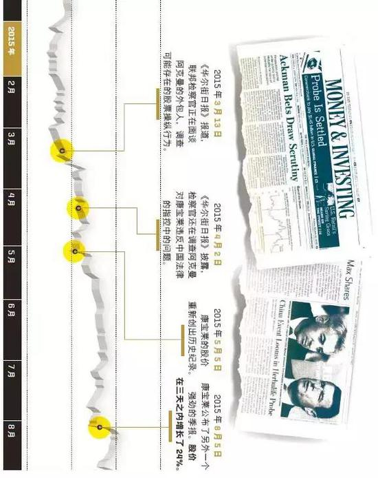 到目前为止,今年的形势持续对康宝莱有利。在2015年第一季度,公司再次拿出了好看的数字。接着,《华尔街日报》在3月和4月报道,曼哈顿的联邦检察官约谈了潘兴广场基金的几位外包人,调查他们在面对州检察长时,以及在与阿克曼的康宝莱中国问题演示会相关的研究中所做的一些可能是虚假的声明。