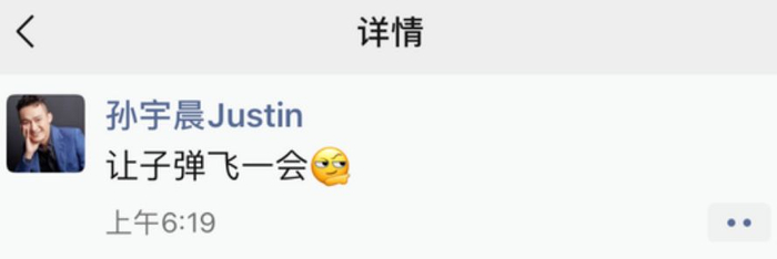 另外一则是“让子弹飞一会”,似乎正是意指赢得拍卖,消息发布的时间也与拍卖结束的时间相吻合。