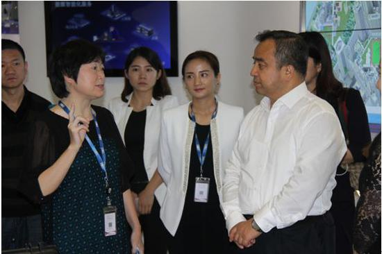 图为科陆电子官网披露,公司时任副总裁鄢玉珍(左)向新疆的参访团队介绍公司情况