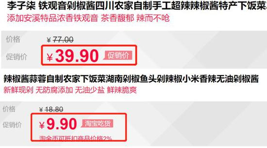 我们来看一个例子,李子柒卖的辣椒酱是39.9元,淘宝上普通的辣椒酱是9.9元。
