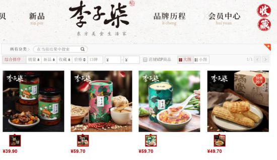 李子柒有一间天猫店,上面卖的基本都是在她视频里出现过的食物。