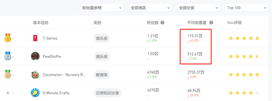 这个播放量已经超过了油管全球粉丝最多的T-Series,以及第二多的PewDiePie。