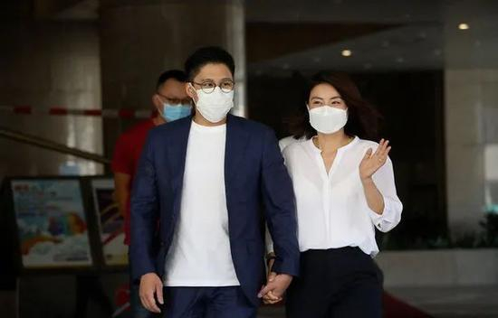 完成报名后,霍启刚与郭晶晶一同牵手走出,接受媒体采访。