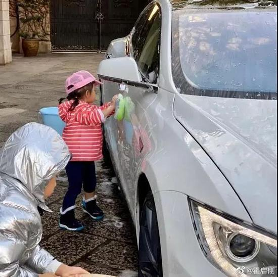 之前,霍启刚发了一张孩子们洗车的照片,引起了网友的讨论。