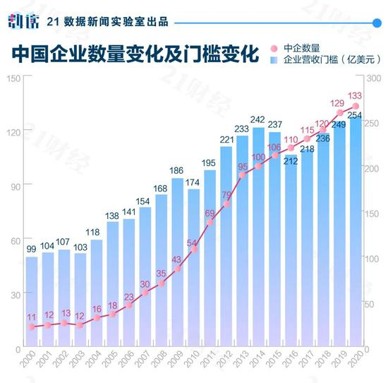 今年中国企业一共有133家入围世界500强,为历年最多。这也是中国企业数量连续第17年增长。