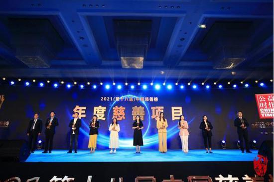 同时受到表彰的还有年度慈善项目,包括:东润公益基金会——东润抗击疫情医护保障及子女教育专项基金、完美(中国)有限公司——完美百人千店万人献血活动、四川中和农道农业科技有限公司——善品公社 、内蒙古老牛慈善基金会——海口五源河湿地公益保护地、北京微爱公益基金会——共同抗疫、新湖集团——“保险+期货”精准扶贫项目、青山慈善基金会——青山东西部帮扶计划、中华少年儿童慈善救助基金会——回家的希望、浙江圣奥慈善基金会——圣奥老年之家项目、先声药业集团有限公司——“让爱延续”先声药业&玉树州八一孤儿学校爱心帮扶行动。