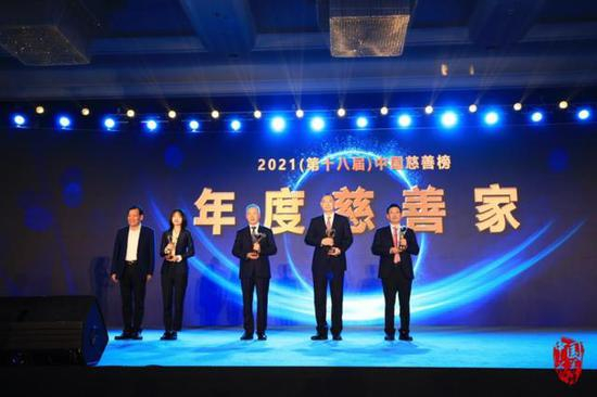 福耀玻璃工业集团股份有限公司副董事长、河仁慈善基金会发起人曹晖,国恩股份董事长、董事王爱国,华坚集团创始人、董事长张华荣,伊电控股集团有限公司董事长霍斌,伟东云教育集团董事长王端瑞被授予年度慈善家称号。
