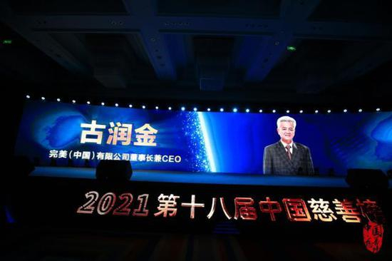 完美(中国)有限公司董事长古润金被授予年度侨商慈善领袖称号。