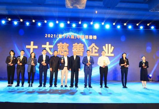 碧桂园集团、中南控股集团有限公司、新奥集团股份有限公司、大众汽车集团(中国)、轻松集团、中食安泓(广东)健康产业有限公司、传化集团有限公司、旭辉控股(集团)有限公司、日照钢铁控股集团有限公司、汇丰银行(中国)有限公司被授予年度十大慈善企业称号。
