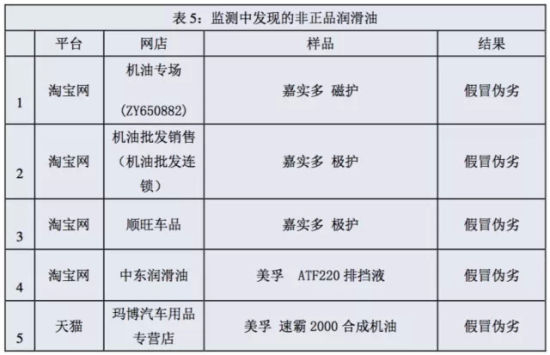 随着家用轿车的普及,汽车后市场规模越来越宏大,电商在这个领域也没有缺席,汽车后市场也是此次定向监测重点之一。记者在淘宝网上一家名为“中东润滑油”的店铺向店家咨询一款标称“美孚ATF220排挡液”的商品,店家声称是“副厂”出的正品,不清楚和“正厂”有何区别,只说“反正油的质量没出过问题,卖了好多客户都还说行,就这么标着的。”监测结果显示,这款“副厂”生产的商品是假货。另外在这次监测的22件润滑油产品中,有5件确定为假货。